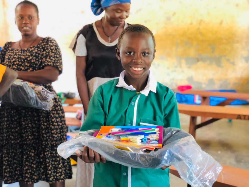- Children with their new things for school
