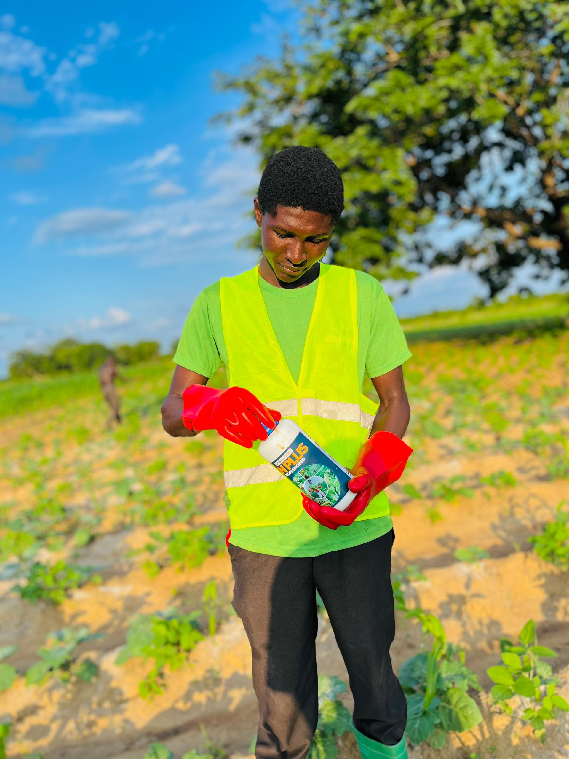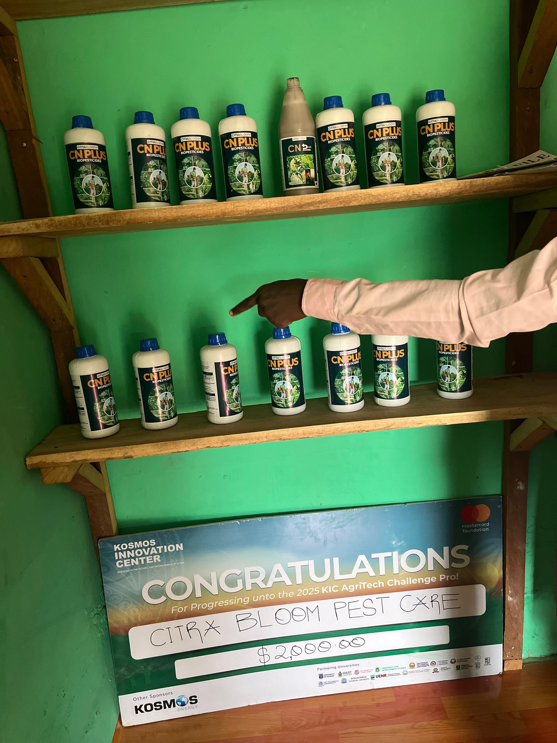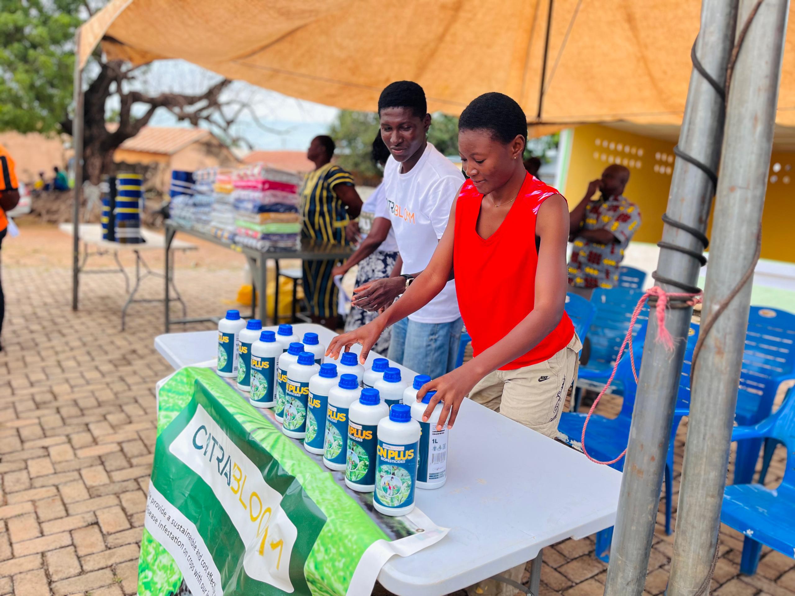 With friends and co-founders Doozie Ludger and Zaagbeb Fidelis, he set up CitraBloomm in 2024, making pesticides with locally-grown, natural ingredients. “We engage market women who sell oranges – usually they throw away the peels – now they dry the peels and we buy them for 100 cedis (£7) for 50 kg.”