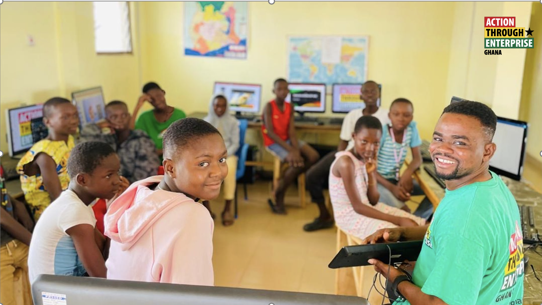 In early 2025, Action Through Enterprise opened its Technology and Learning Zones in our two Inclusion Centres in Lawra and Nandom. First came computers and the Zones immediately were full of children – many who had never seen a computer before – getting a chance, at last, to try using a mouse and a keyboard. Gradually, working with my Lawra colleague Michael Frimpong Gyimah, we developed an Information and Communication Technology (ICT) Programme which includes basic digital literacy skills such as use of Office 365 applications, typing accuracy and speed, understanding the components of a computer, design and basic coding.